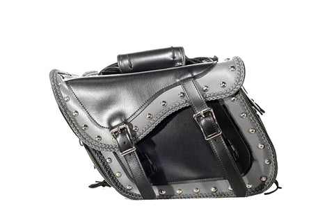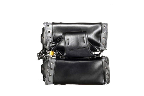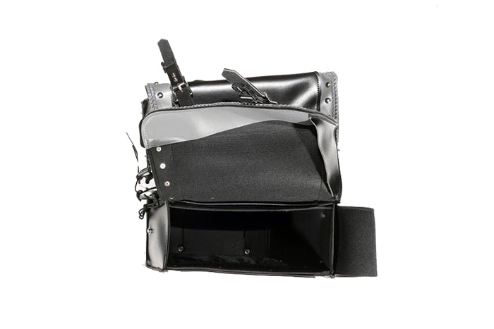 This amazing motorcycle saddlebag features chrome plate along the bottom of the bag. The chrome plate is designed to add shine to your ride, and to protect the saddlebag from heat. We cover the chrome plate with our blue foil to make sure it does not get scratched.