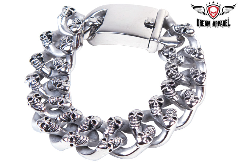 Heavy Duty Stainless Steel Bracelet With Skulls