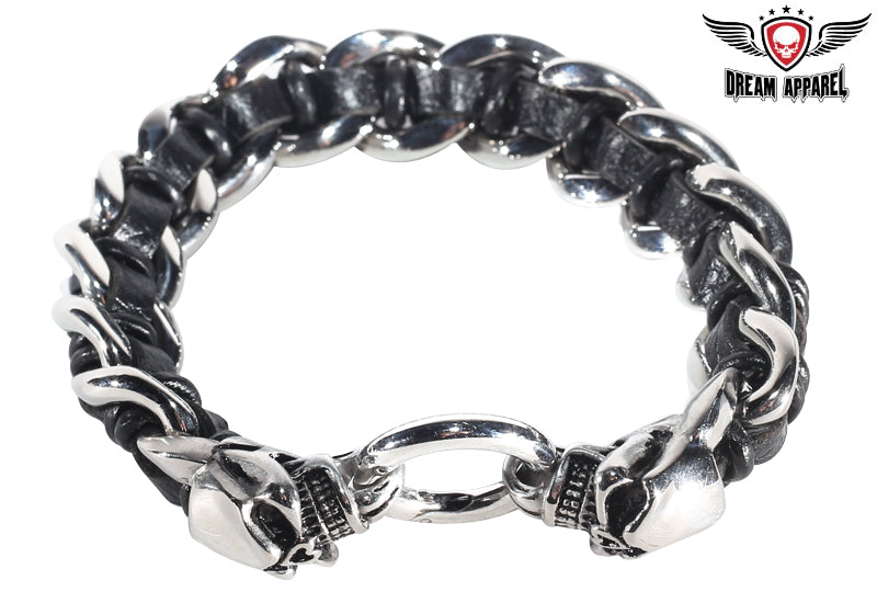 Our stainless steel motorcycle bracelet with skulls and leather lace is not only an accessory for daily rides, but an awesome accessory for going out or hitting up your favorite bar.