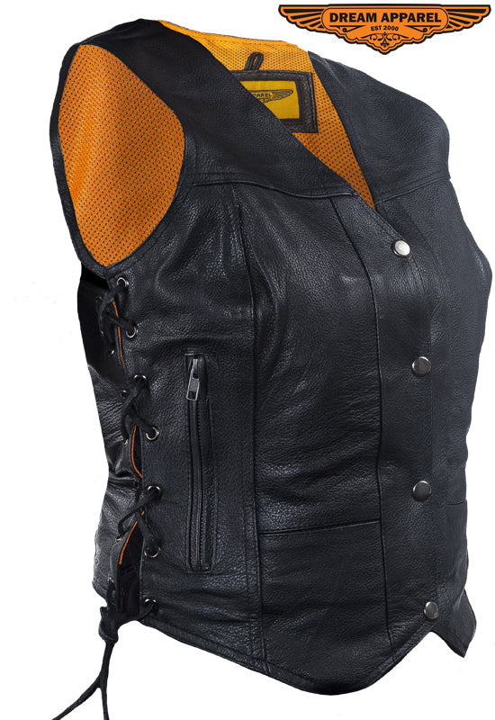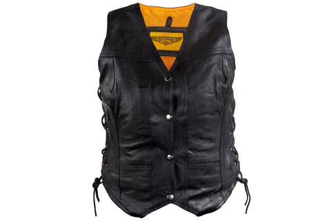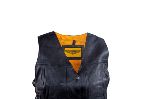 Womens Cowhide Leather Motorcycle Vest With 7 Pockets