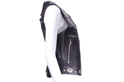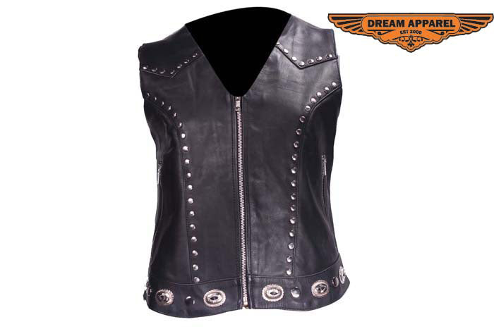 Womens Studded Leather Motorcycle Vest With Concealed Carry Pockets